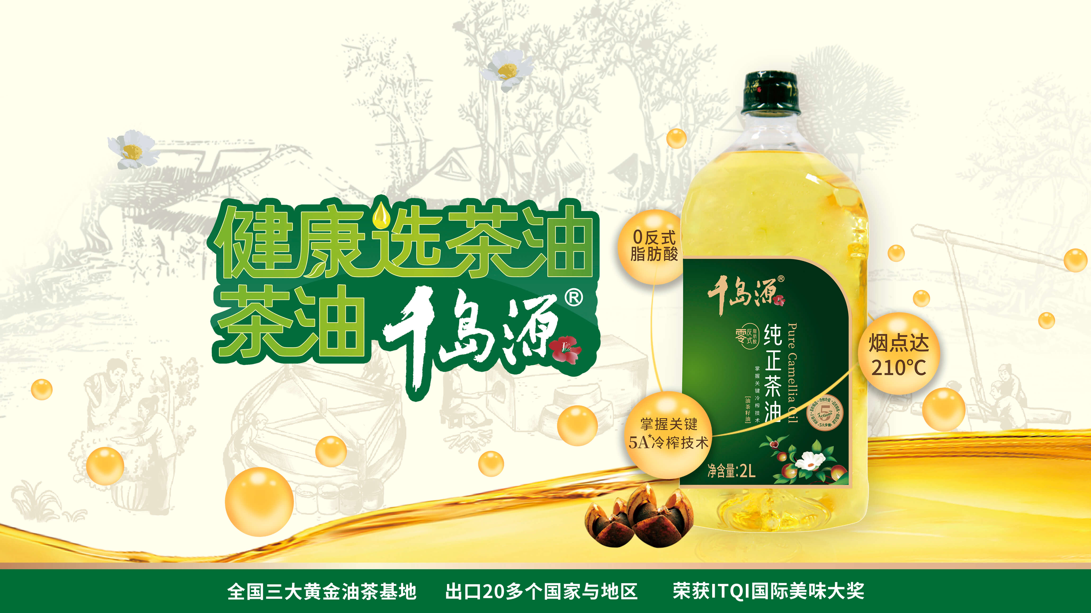 采用當季高山新鮮有機油茶籽冷榨而成,取頭道冷榨油,采用烘焙留香和生香技術,新鮮香濃,營養豐富,堪稱茶油中的“土雞蛋”